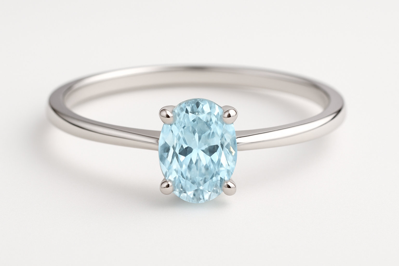 9ct Gold Lab Grown Blue Solitaire diamond Ring – 1ct oval