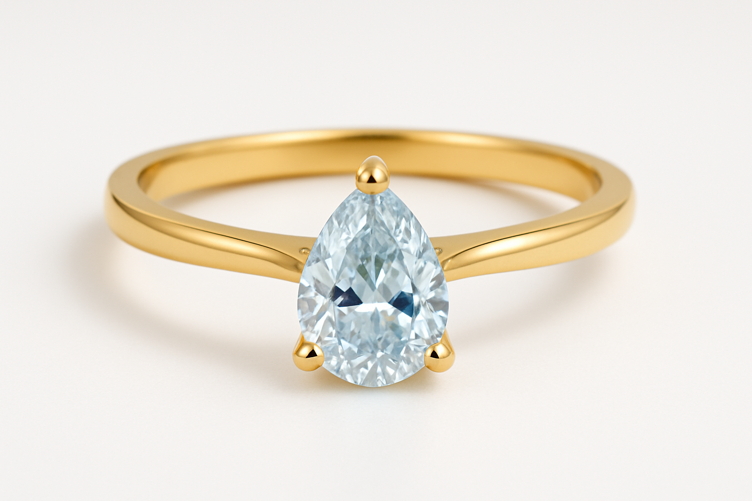 9ct Gold Lab Grown Blue Solitaire diamond Ring – 1ct Pear