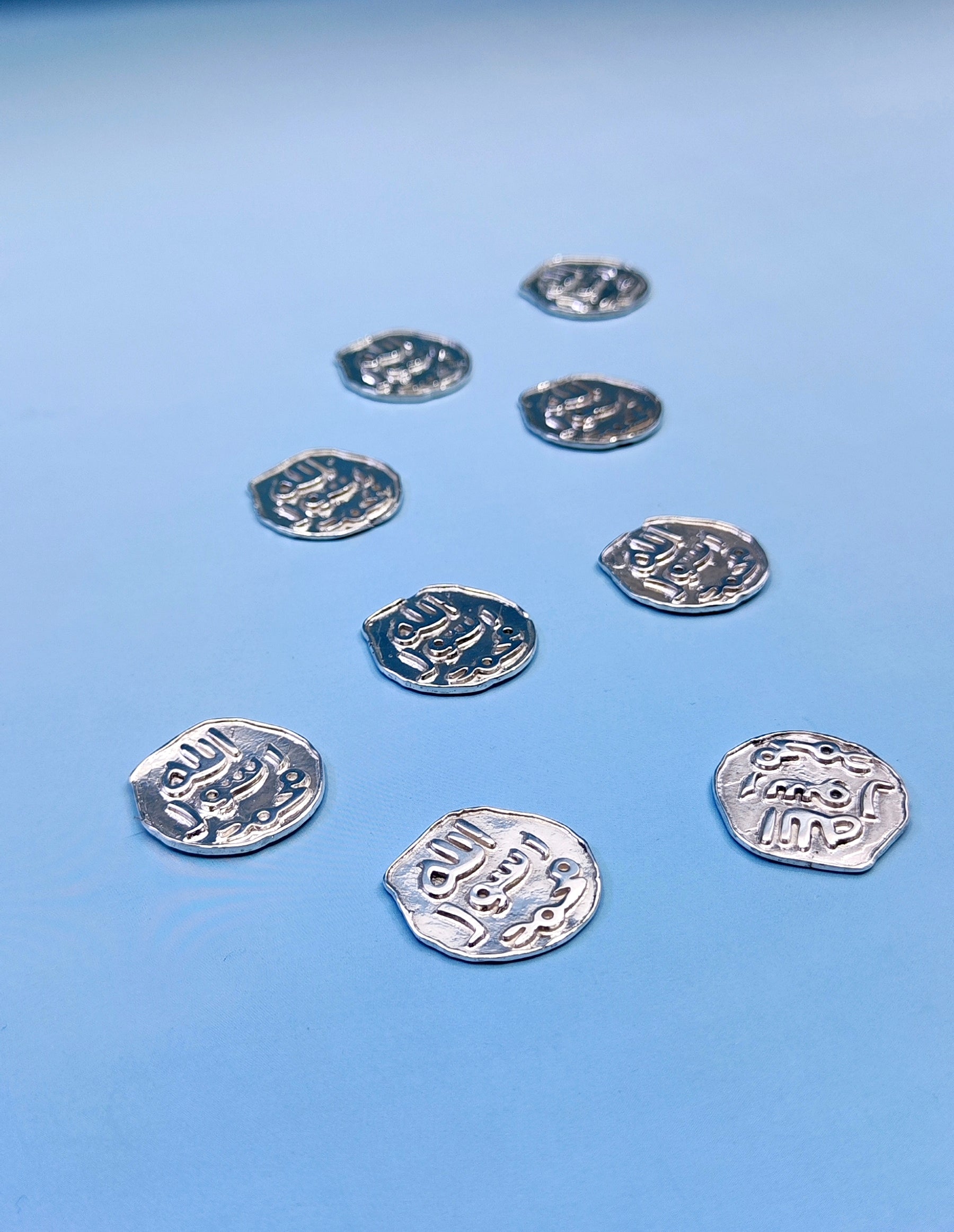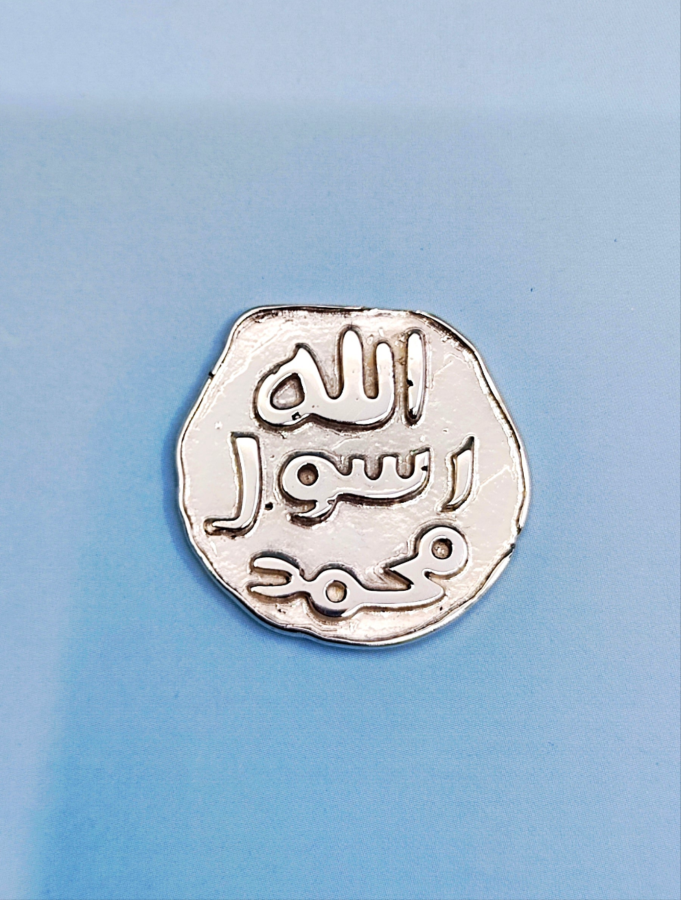 This is a 2:1 Medallion in Silver Depicting the Ring seal of the Blessed Prophet Muhammed (May Peace be Upon Him)